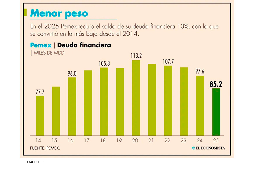 Encuentre la nota en: https://www.eleconomista.com.mx/empresas/deuda-pemex-toca-minimo-11-anos-20260301-802201.html