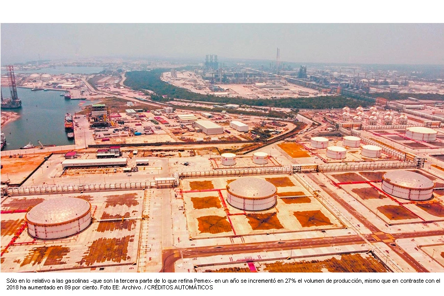 Sólo en lo relativo a las gasolinas -que son la tercera parte de lo que refina Pemex- en un año se incrementó en 27% el volumen de producción, mismo que en contraste con el 2018 ha aumentado en 89 por ciento. La elaboración de gasolina Magna de 87 octanos fue de 297,467 barriles por día el décimo mes del año, con un incremento de 18% en un año, pero de 77% en comparación con el 2018 en que cambió la política energética para priorizar la refinación doméstica por encima de las exportaciones de hidrocarburos.