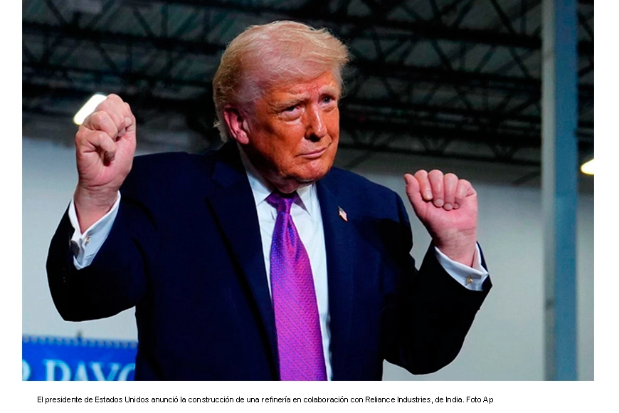 Encuentre la nota en: https://www.jornada.com.mx/noticia/2026/03/11/economia/trump-anuncia-nuevo-proyecto-de-refineria-en-alianza-con-india-estaria-en-texas