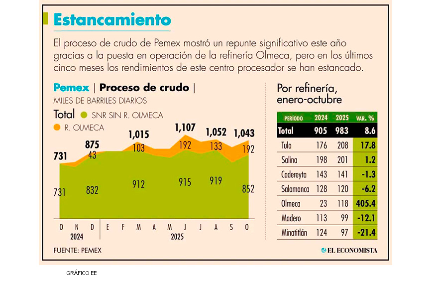 Encuentre la nota en: https://www.eleconomista.com.mx/empresas/pemex-mantiene-53-capacidad-refinacion-20251126-788520.html