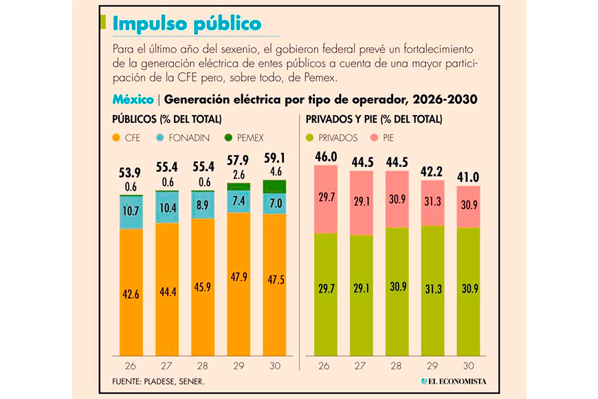 La petrolera estatal contribuirá a que la generación del sector público pase de 54% a 59% al cierre del sexenio.