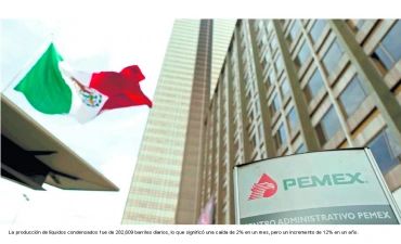 La producción de líquidos condensados, que son peptanos de mayor valor, pero un mercado menor, fue de 282,609 barriles diarios, lo que significó una caída de 2% en un mes, pero un incremento de 12% en un año.