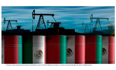 El pasado viernes, el precio de la mezcla mexicana cerró en 93.04 dólares por barril, lo que representó su mayor nivel desde el 29 de julio de 2022, es decir, tres años con siete meses.